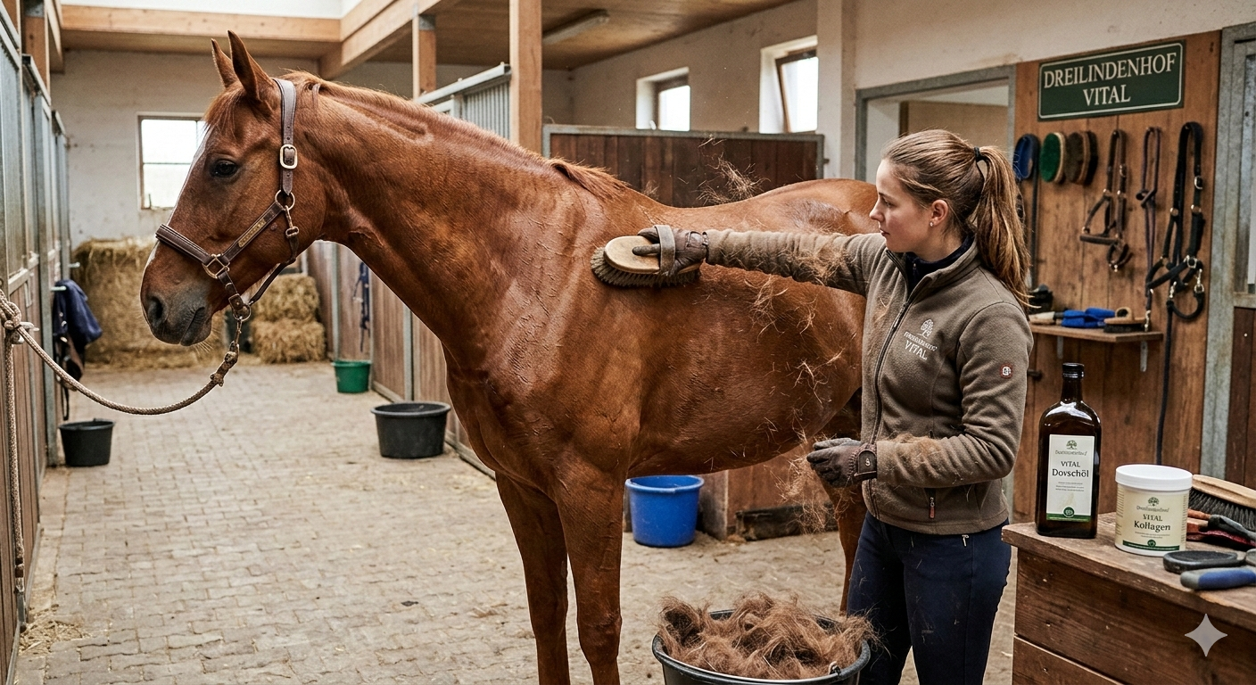 Es ist wieder so weit: Die Tage werden länger, und plötzlich scheint Ihr Pferd aus mehr losen Haaren als aus Pferd zu bestehen. Der Fellwechsel ist für den Organismus unserer Vierbeiner eine echte Mammutaufgabe. Während wir nur die dicke Jacke ausziehen, muss der Pferdekörper den kompletten Stoffwechsel hochfahren, um das neue Haarkleid zu produzieren. Das kostet Energie, Vitamine und Mineralstoffe. Damit Ihr Schatz nicht schlappmacht und die Haut gesund bleibt, haben wir vom Dreilindenhof die perfekte Unterstützung für Sie zusammengestellt. Warum der Fellwechsel Schwerstarbeit ist Sobald sich das Tageslicht verändert, geht der Stoffwechsel auf Hochtouren. Das beansprucht besonders: Die Haut & Haarwurzeln: Sie benötigen massiv Nährstoffe für den Neuaufbau. Das Immunsystem: Viele Pferde sind in dieser Zeit anfälliger für Infekte. Die Entgiftung: Leber und Niere arbeiten auf Hochtouren, um Stoffwechselnebenprodukte abzutransportieren. Unsere Helden für den Fellwechsel (direkt aus unserem Shop) Damit Ihr Pferd glänzend und vital durch diese Zeit kommt, finden Sie auf www.dreilindenhof-vital.de gezielte Unterstützung: Der Glanz-Booster: Dorschöl „Wilder Dorsch“ Unser Dorschöl ist ein echter Geheimtipp im Fellwechsel. Es liefert hochwertige Omega-3-Fettsäuren (EPA und DHA) sowie natürliche Vitamine A und D. Warum es hilft: Es unterstützt eine starke Hautbarriere, lindert Juckreiz und sorgt für diesen unvergleichlichen Tiefenglanz im neuen Fell. Hier erhältlich: Dorschöl Wilder Dorsch Struktur von innen: Dreilindenhof VITAL Kollagen Kollagen ist nicht nur für die Gelenke wichtig. Es ist ein wesentlicher Bestandteil des Bindegewebes und der Haut. Warum es hilft: Eine Zufütterung im Fellwechsel unterstützt die Elastizität der Haut und die Festigkeit des nachwachsenden Haares. Besonders bei älteren Pferden, deren Eigenproduktion nachlässt, ist es ideal. Hier erhältlich: Kollagen für Pferde Der Stoffwechsel-Turbo: MSM pur Organischer Schwefel (MSM) ist an unzähligen Prozessen im Körper beteiligt, insbesondere am Aufbau von Keratin – dem Hauptbestandteil von Pferdehaaren. Warum es hilft: Es fördert die Stoffwechselprozesse im Bindegewebe und ergänzt die Versorgung perfekt, wenn der Körper unter Hochspannung steht. Hier erhältlich: MSM pur 3 Tipps für die Übergangszeit Frühzeitig beginnen: Der Körper baut das neue Fell bereits auf, bevor Sie die ersten Haare am Putzhandschuh sehen. Starten Sie die Kur am besten schon jetzt! Unterstützung der Entgiftung: Achten Sie auf eine gute Leber- und Nierenfunktion. Ergänzend zu unseren Vitalstoffen hilft viel frische Luft und moderate Bewegung. Massage-Effekt: Tägliches Putzen entfernt nicht nur lose Haare, sondern regt die Durchblutung an, damit die Nährstoffe aus dem Futter auch wirklich in der Haut ankommen. Wir wünschen Ihnen eine möglichst „haarfreie“ Zeit und einen fitten Start in die neue Saison!
